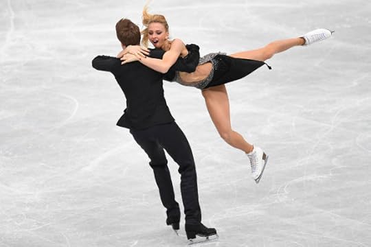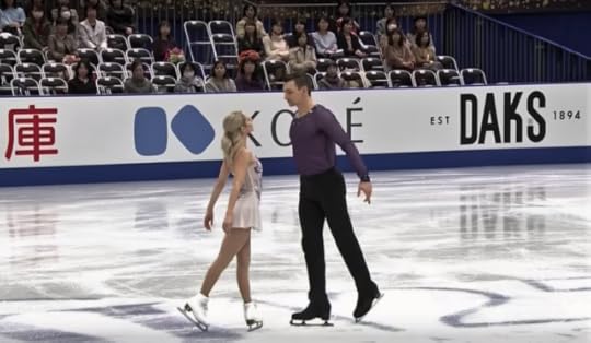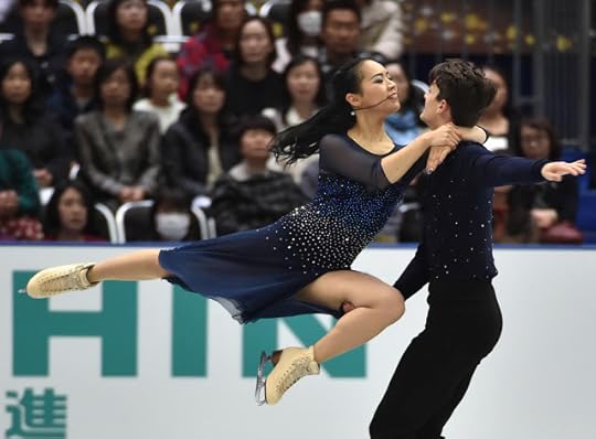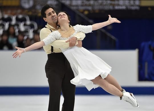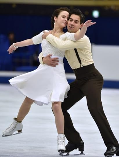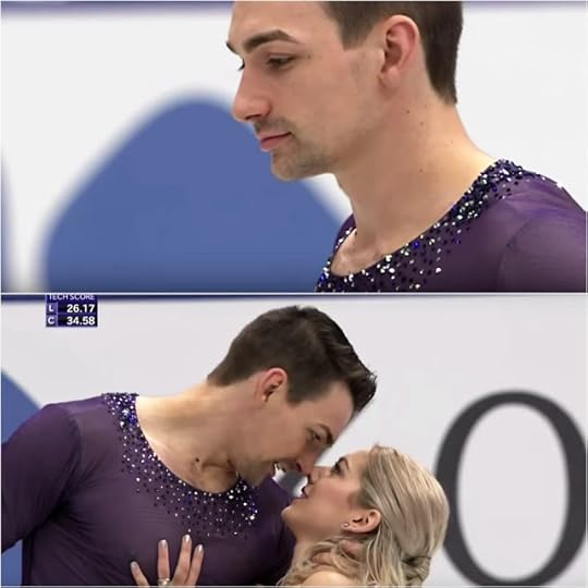 O by Coldplay--This is the same program music from last season but Thank Goodness, it was a different costume. Not that I didn't like last season's costume but THIS WAS GORGEOUS! The look--designed by Veretto Sport and designer  Braden Overett --included blue skin tight pants and a second-skin sequined top. That top was OUTSTANDING--like Figure Skating Haute Couture! There were hints of the sky and bird's wings (to go along with the music) but not so overtly like last season's feathered costume.