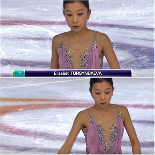 Elizabet Tursynbayeva of Kazakhstan: Elizabet skated her Free Skate to The Prayer performed by Celine Dion, Andrea Boccelli in this lilac costume. I liked the costume; the ombre-dyed look featured a gathered upper torso with exquisite silver sequin embellishment. The costume looked EXPENSIVE for sure. If there was any critique, I just felt the ruching in the front torso looked heavy--especially for her TEENY TINY frame. I am sure they were trying to give the illusion of a bust when there isn't one (she's 17 and 4'10"!) but maybe they should take away some of that gathering and make it...flatter...but still with a little ruching?! The sequins, however were GORGEOUS!