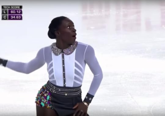 Mae Berenice Meite of France: I have discussed Mae Berenice and her costumes for this season before at the 2017 Rostelecom Cup of Russia--click HERE--so when I saw this look at the Grand Prix of France for her Free Skate to Les Nocturnes de Chopin and Happy by C2C, I was like "WAIT! There is something different!". I remember her lady-like Peter Pan collar and rather basic white and black costume (at least for her!) but those rhinestones were NOT THERE! I swear!...