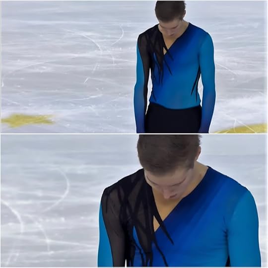 Free Skate to Meditation (from "Thais") by Jules Massenet--In my Ice Style post for the 2017 Rostelecom Cup HERE, I talked about Misha's costume for his Free Skate. While I liked it--the golden/violet/silver sequins were nice and ombre shaping on his top was pretty--I just wasn't a fan of the nude illusion panel I saw here: