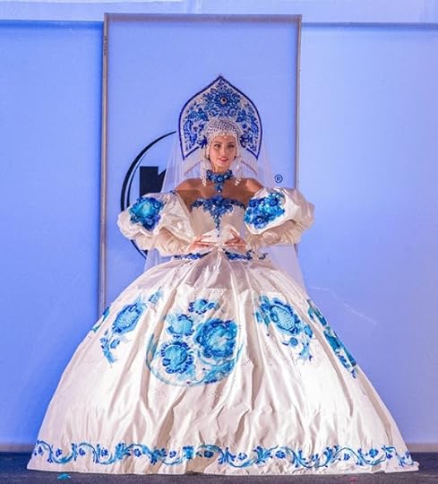 9. Miss Universe Russia Ksenia Alexandrova: Ksenia wore this stunning ballgown of a costume inspired by Russian Gzhel pottery/ceramics. The design features hand-painted flowers and delicate rhinestones and that glorious traditional Russian folk headdress. Everything about this was Russia Perfect! This costume should be re-vamped as part of a fabulous "Nutcracker Ballet" for the "Mother Gigogne" dance number, where all the kids come out from underneath!