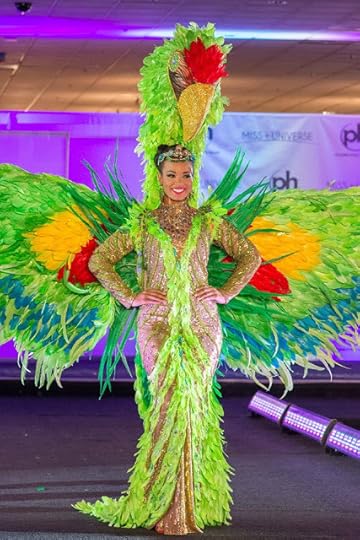 14. Miss Universe Cayman Islands Anika Conolly: Annika's gorgeously colored costume represents the Cayman Islands Parrot, the national bird of the islands. The Cayman Islands parrot is a subspecies of the Cuban Amazon Parrot, known for its bright colors. I think the costume is made fabulously, using sequins, feathers over a glittery "nude gown" to really pay homage to this beautiful bird.