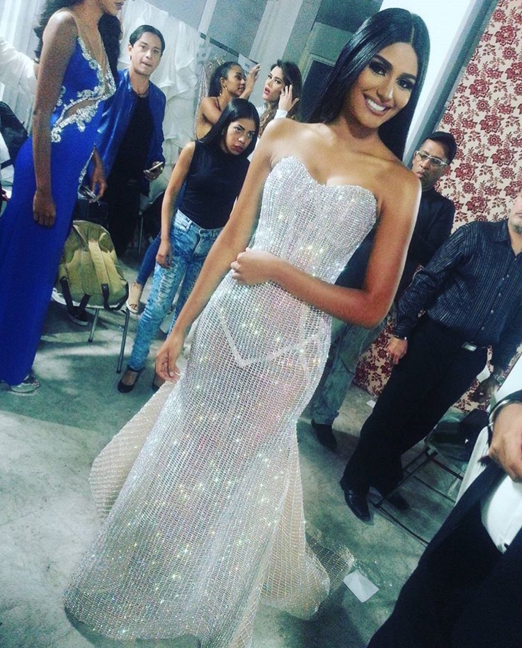 6. Miss Aragua Oriana Rodriguez: This dress above was the gown worn by Miss Aragua Oriana Rodriguez for the Finals of Miss Venezuela 2017. The design was made of ivory silk crepe and nude illusion, cut into panels that created a fit-and-flare silhouette. The beautifully-fitting dress was designed by Julio Mora and featured thousands of degrade-style crystals. I loved the heavy-to-light sequin work and the panels were done in an exquisitely sexy yet not vulgar manner. Muy bien!
