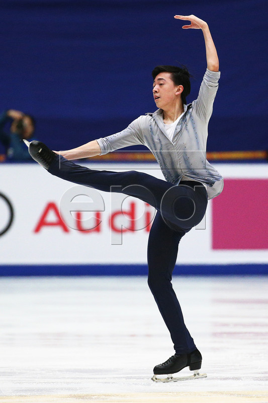Jason Brown of USA: Jason skated his Short Program to The Room Where It Happens (from "Hamilton") by Lin Manuel Miranda. We know that Jason Brown has probably never met a fabulous costume he did not like and from the moment he stepped onto the ice, you KNEW he was skating to "Hamilton": I loved this costume. The sleeveless jacket color, the sharp black buttoned lapels, white ruffled blouse, grey vest, pants...all reflected the era and look of Aaron Burr in "Hamilton" and overall, it was an EXCELLENT costume: