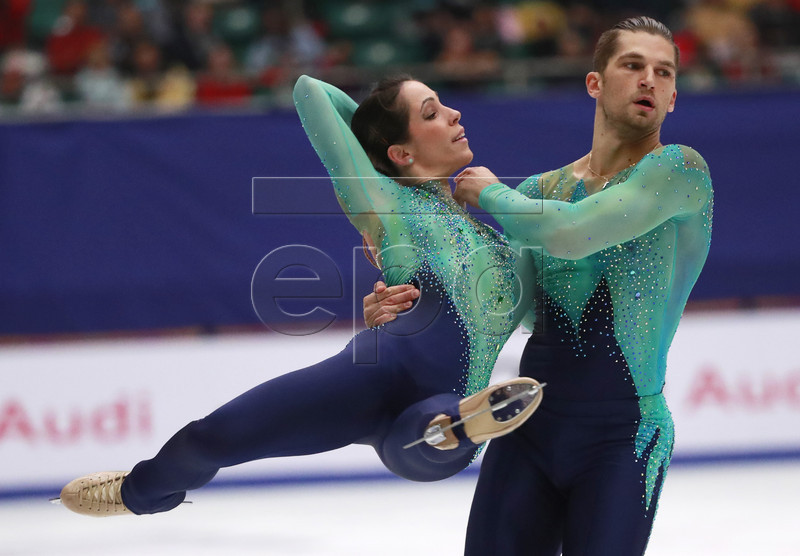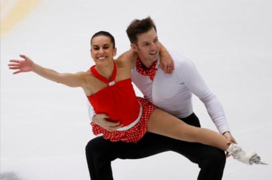 Valentina Marchei and Ondrej Hotarek of Italy: Marchei and Hotarek skated their Short Program to Tu vuo fa l'Americano by Renato Carosone. The music and program was SOOOO Italian, they should have served the judges some Limoncello after they skated! The colors and fun presentation were a welcomed respite from the usually more serious Pairs programs. Ondrej wore black pants, tight white dress shirt and red polka dotted neck-scarf. He looked like the waiter of a fun pizza restaurant. And Valentina wore this red mini dress using the same polka dotted print for the skirt.