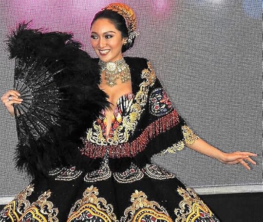 1. Miss Earth Philippines Karen Ibasco: Karen won the Gold for Asia, and she gets MY GOLD PRIZE for BEST COSTUME of all the contestants! "Miss Earth Philippines'" costume was a Filipiniana Terno designed by Louis Pangilinan. It was EXTRAORDINARY! From the statement-making necklace...to the off-the-shoulder Mantilla top...to the fan...