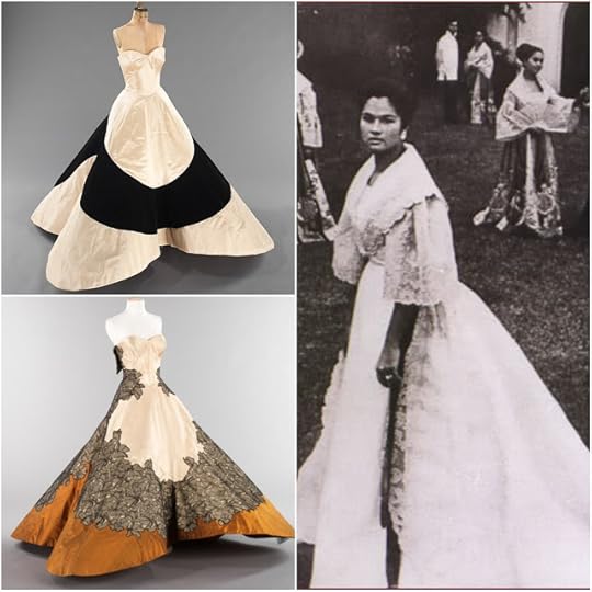 Charles James Meets Filipiniana: Charles James gowns (left) and an example of a traditional Filipipiana Terno Dress (right)