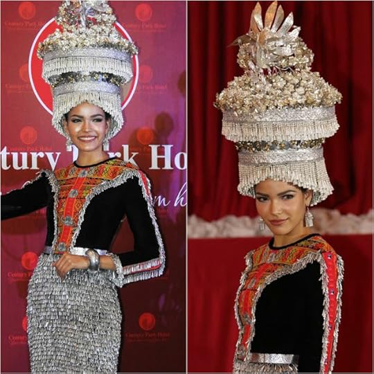 2. Miss Earth Thailand Paweensuda Drouin: My second favorite was the costume worn by the stunning Paweensuda Drouin, Miss Earth Thailand. This stunning creation represents the Hmong Thai tribe, showcasing the gorgeous intricate silver headdress and batik printed fabric of the Hmong. The exquisite detail on the headdress alone deserves a medal! And I do love how chic the top and skirt look. Take that crown away and that outfit alone could be worn at a very fancy black-tie gala in Bangkok!