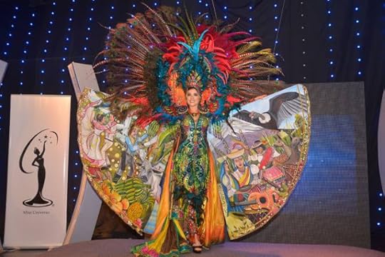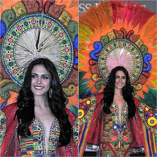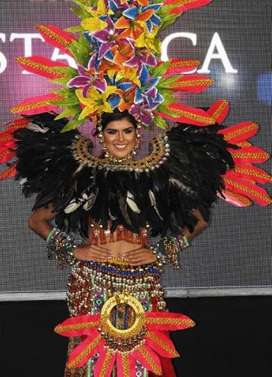 Miss Universe Guatemala Isel Suniga: Isel's national colorful costume was inspired by the Festival de Sumpango/Festival de Barriletes Gigantes, or Festival of the Gigantic Kites. I'm already making the prediction that this might be one of the most impressive costumes of this year's Miss Universe. I think it's a different way of showcasing these Pre-Columbian feathered-and-sequined costumes that are have been very popular with the Latin American ladies lately.