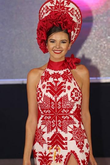 14. Miss Earth Mexico Karen Bustos: Karen comes from San Luis Potosi in Mexico and therefore, her costume paid tribute to the fabrication used in San Luis Potosi traditional dress. I loved the fashion-fab design (sleek column gown with side front slit!), the great red-and-white print, and super headdress adorned with red rose-shaped satin. I think it's so great when a designer can take a traditional folkloric dress and take it to another, almost-red carpet level! Muy bien!