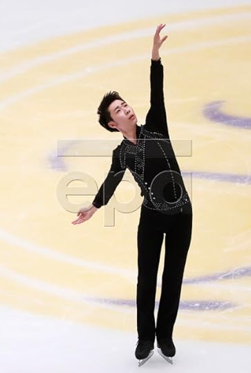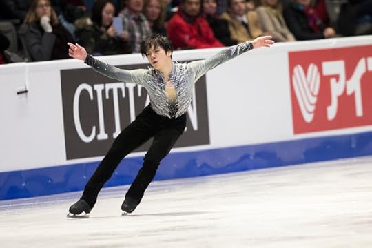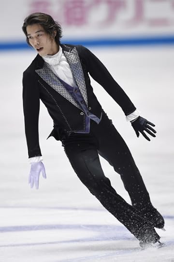 Shoma Uno of Japan: I look forward to what Japan's Shoma Uno will wear each season for his programs since he seems like a skater who cares about his costume and the whole stage presence/artistry of it all. For his Short Program to Winter (from "Four Seasons") by Antonio Vivaldi, he wore this costume above. I loved this costume on him. The Ombré dyed stretch velvet combined with the beautiful beadwork that mimicked ice crystals all combined to create the perfect accent to his stunning skating.