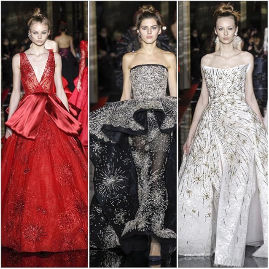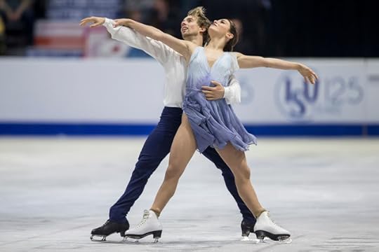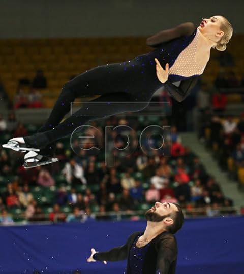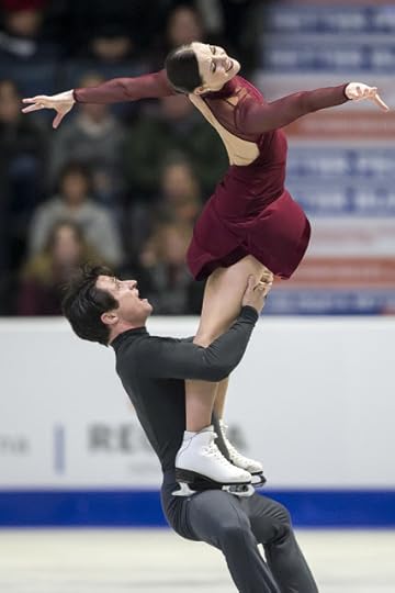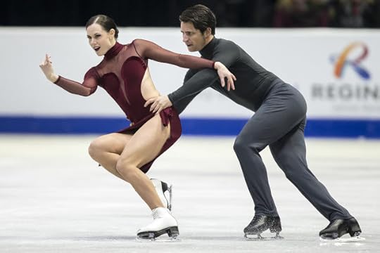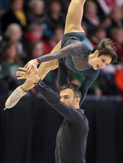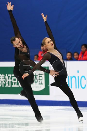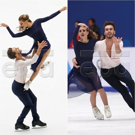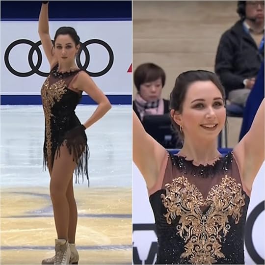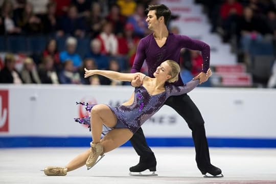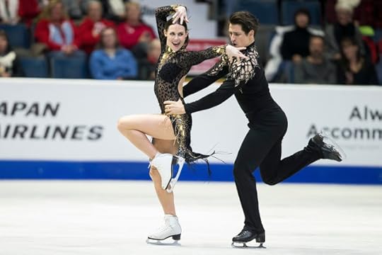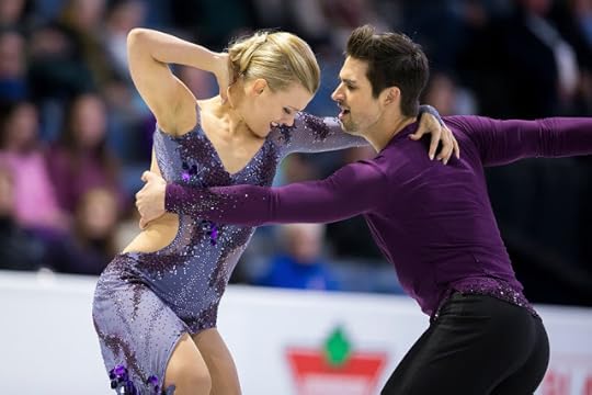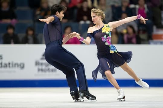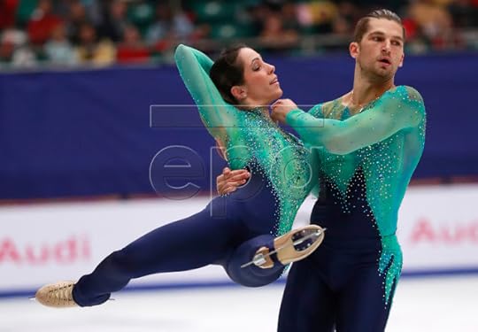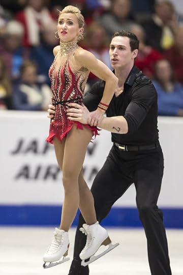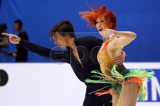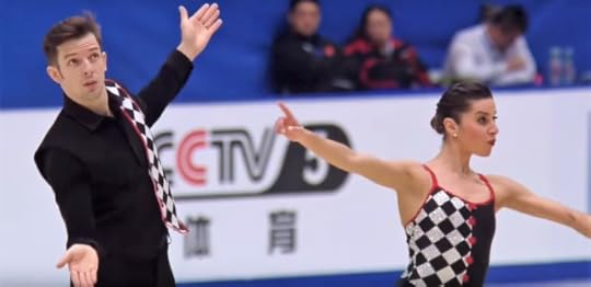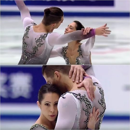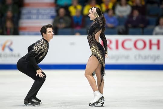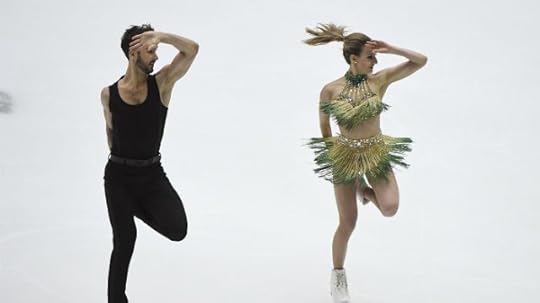 Kaitlyn Weaver and Andrew Poje of Canada: For their Short Dance to Bolero: Tango by Diane Reeves; and Mambo: Do You Only Wanna Dance performed by Julia Daivel Big Band, this Canadian Ice Dance couple went a bit "Carmen Miranda"...at least she did. I get that the themes are Mambo/Samba/Rhumba, etc. and there are so many costume variations on that...but Kaitlyn's sequined flower dress--while beautifully draped--was a bit "Miss Brazil" for me (yes, even ME!). I didn't dislike it, and do think it's kinda gorgeous but (maybe it's just her blond hair/porcelain skin) it looks like a "Latina Costume" on her. Andrew--on the other hand--looked sexy and perfect. The see-through shirt (On Trend!); the SUPER TIGHT tuxedo striped pants (Hello!)...he looked MUY BIEN!