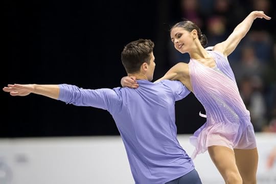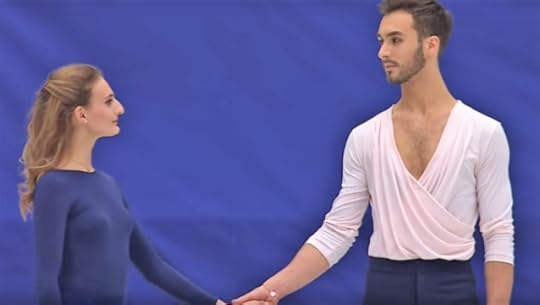 Natalia Zabiiako and Enbert of Russia: Zabiiako and Enbert skated their Short Program to Summer of 42 (soundtrack). The movie--according to Wikipedia --is a "coming-of-age comedy/drama about a summer vacation on Nantucket Island in 1942. These costumes had NOTHING to do with Nantucket...or 1942, for that matter, but I liked them! The lilac colors were pretty and soft and her beautifully draped dress was so refined. I also loved his asymmetrical neckline top with horizontal sequined darts and gathered side. Even though these had NOTHING whatsoever to do with the movie and era...I was still a fan.