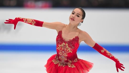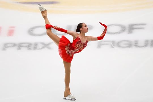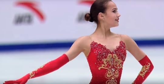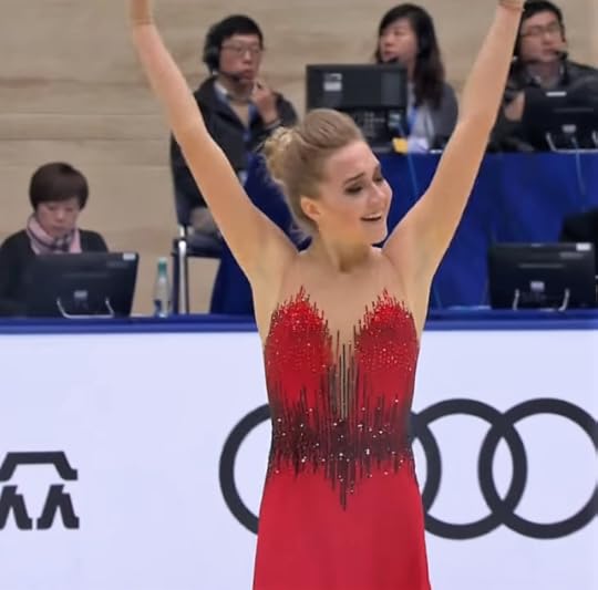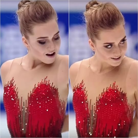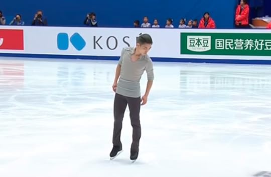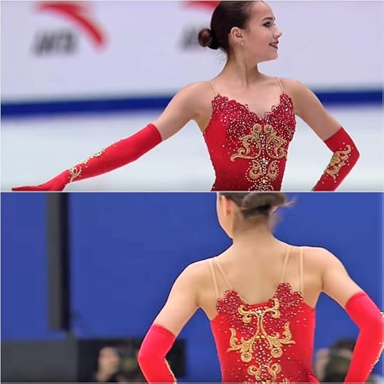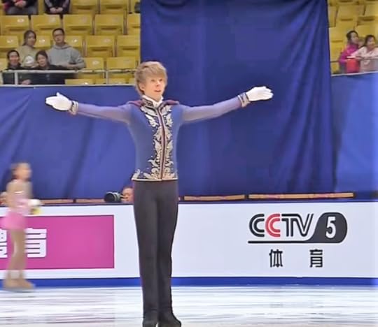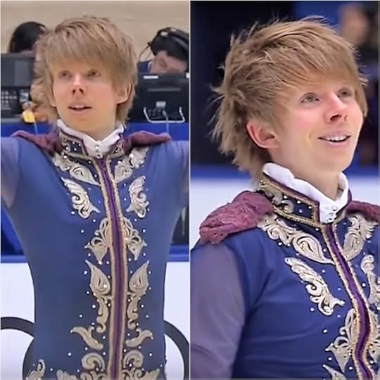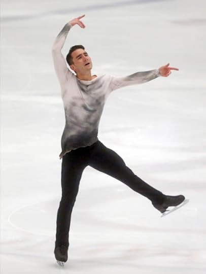 Free Skate to Hallelujah by Leonard Cohen, performed by Jeff Buckley: Once again, not sure if his actual costumes finally arrived and these were those but if not--who cares? I thought this was, again, quite beautiful. I LOVE seeing male figure skaters wear softly draped tops such as these. It might not have been much of a costume--and it would be nice to see maybe some red piping (or a red tuxedo stripe) down the side of the pants--but I appreciated the draping.