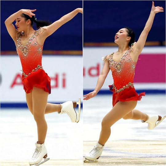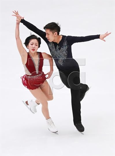 Cheng Peng and Yang Jin of China: The Chinese Pairs team skated their Short Program to Assassin's Tango (from "Mr. and Mrs. Smith" soundtrack) by John Powell. I thought these were nicely done costumes for both of them. Her red sequined dress was beautiful and looked Haute (LOVED that neckline!) and his Mandarin-collared tuxedo shirt and back pants look was right--for the music and theme. I also appreciated the black buttons on the shirt that picked up the black color of his pants.