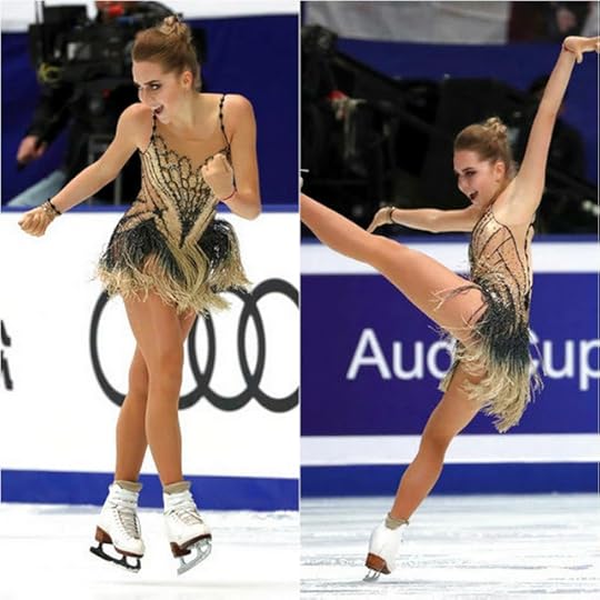 Vanessa James and Morgan Cipres of France: Leave it to Vanessa and Morgan to get me excited about Pairs Costumes! They always BRING IT! And this season is no exception. For their Short Program to Make It Rain by Ed Sheeran arranged by Maxime Rodriguez, Vanessa wore this (almost) painted-on silver unitard/bodysuit. The costume had a gorgeously sequined bodice and...SERIOUSLY, it was A SECOND SKIN. She looked AMAZING. Morgan was not left behind--costume-wise--with his matching silver top and gray skin-tight pants. His top was quite nicely designed with the solid/nude illusion panels, side slits, super tight fit, and slim sleeves. I love how the costume designer made BOTH of them SO SUPER SEXY. It's never all about her. Morgan is no Figure Skating Costume Chopped Liver huney!