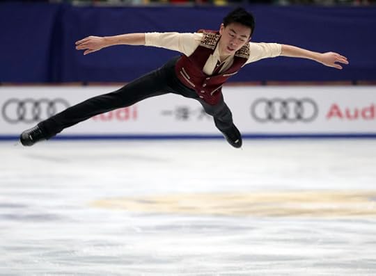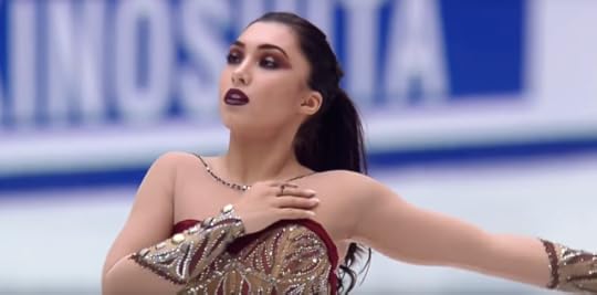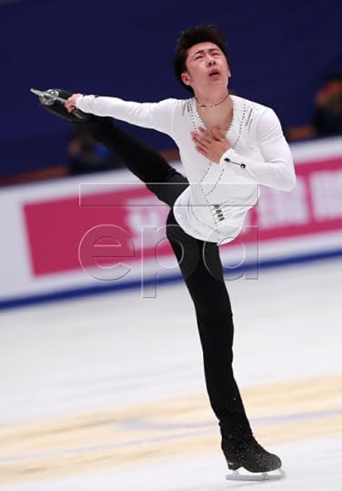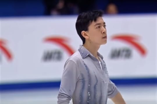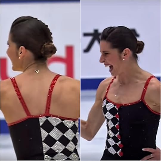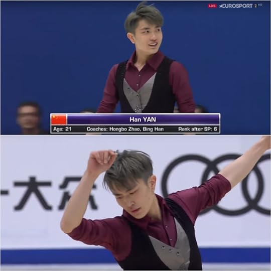 Free Skate to The Phantom of the Opera by Andrew Lloyd Webber--For his Free Skate, Takahito brought back (Groundhog's Day!) his program from the 2014-2015 Season but...it was a different cut of music (well, at least, there's that!) AND this old-but-new program was choreographed by none other than Charlie White! In terms of his costume, he wore this part black/part cabernet red jacket look with heavily studded lapel, a red chest pocket hankie and mismatching black and white gloves. Mura, once again, took it into a Too Mucheey Costume Level. I get the "Phantom" reference, but it was all a bit too kitschy for my taste. But...at least he didn't repeat his costume: