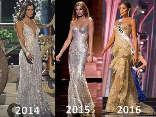 14. Miss Miranda Oriana Gil: At No. 14, I wanted to add this design by Carlos Ferrera worn by Miss Miranda Oriana Gil. First off: She is GORGEOUS! OK, frankly, they ALL were! Moving on... when she walked out, she wore this Empire-waist tulle concoction and at first I thought "Ooooh, someone is trying to give a Giambattista Valli Moment"(and not so well!) and then I thought "I bet she's going to remove it ASAP!" (I hope!). And she did...well, kind of; when she untied it, it drew gasps since, it turned into the overskirt of a quite stunning sequined column gown that she was hiding underneath. The tulle thing was a MESS and did not flatter her at all and then it looked so unnecessary once she displayed the dress underneath. The saving graces were: Oriana was GORGEOUS (I think I already said that!), and the inner dress was quite pretty.