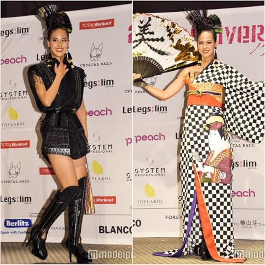 Miss Universe Japan Momoko Abe: From Samurai Warrior Goddess to Geisha Kimono Diva! Miss Universe Japan debuted her national costume recently and when she walked up onstage, she started with the Samurai look on the left and in the span of two seconds, she did a turn, flipped something on her shoulders...and VOILA! A glorious and colorful Geisha Robe appeared! If you still don't understand...