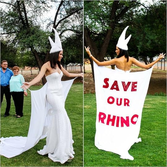 Miss Universe Namibia Sune January: Miss Universe Namibia's costume has a message and it is in red rhinestones: "Save Our Rhino". The design includes a strapless fit-and-flare gown with an attached cape displaying the studded message. She accessorized the costume with rhinoceros horn headdress.