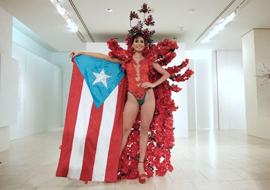 Miss Universe Puerto Rico Danna Hernandez: Made by hand with the help of an electric generator because there was no electricity (!), this costume for Miss Universe Puerto Rico depicts the vivid color of red representing the happiness and passion of Puerto Rico. Designed and made by Jaer Caban, the costume is inspired by the Royal Poinciana--also known as "The Flamboyant Tree", the red flowers can be seen in the back "Wings" of her costume. And naturally, she will be proudly holding a sequined flag of Puerto Rico.