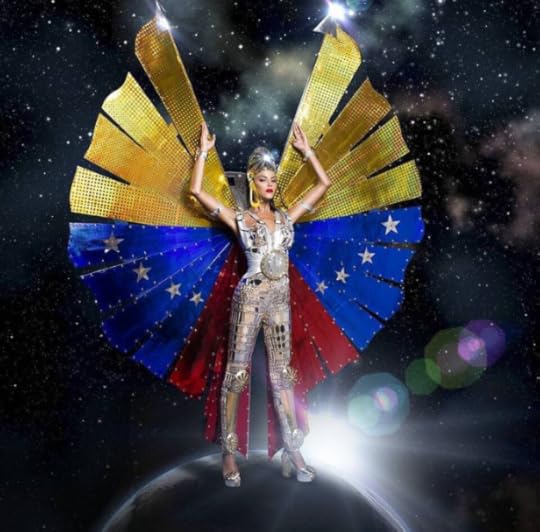 Miss Universe Venezuela Keysi Sayago: Venezuela's contestant, Keysi Sayago, revealed her national costume via social media and it is a "Venezuelan Warrior". The costume--which includes a metallic silver jumpsuit-like costume and a very glorious "wing" of the Venezuelan flag--represents the brave Venezuelan women and is described as one who rises to the adversity of the present and the future with great history in its sword (coat of arms), worthy thoughts in the present (Bolivar medal), and fair and balanced, intuitive and spiritual protector and above all free (colorful wings of the macaw). The costume (silver part) is made of mirror acrylics making it look like a metallic shell. The overall effect is this strong, powerful Venezuelan woman ready to fight whatever battles and hardships come her way. It was deigned by Alejandro Fajardo who designed many of the GORGEOUS gowns seen at last week's Miss Venezuela 2017 Beauty Pageant. I love the message and I think the costume makes a bold and powerful statement.