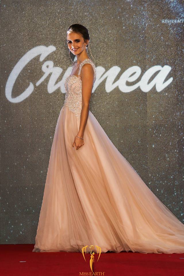 4. Miss Earth Crimea Elena Trifonova: In case you guys are wondering...yes, there is a "Miss Earth Crimea". Move on...Now, let's discuss her gown! I thought she looked quite pretty! The light pink ballgown was delicate and Princess-like. The dress had a sequined bodice and full tulle gown-skirt and Elena looked very Lily Collins-like in this. She should save this gown for the "Miss World" or "Miss International" peeps (if she ever competed with those pageants) 'cause they would LOVE THIS; it's SOOOOO THEM!