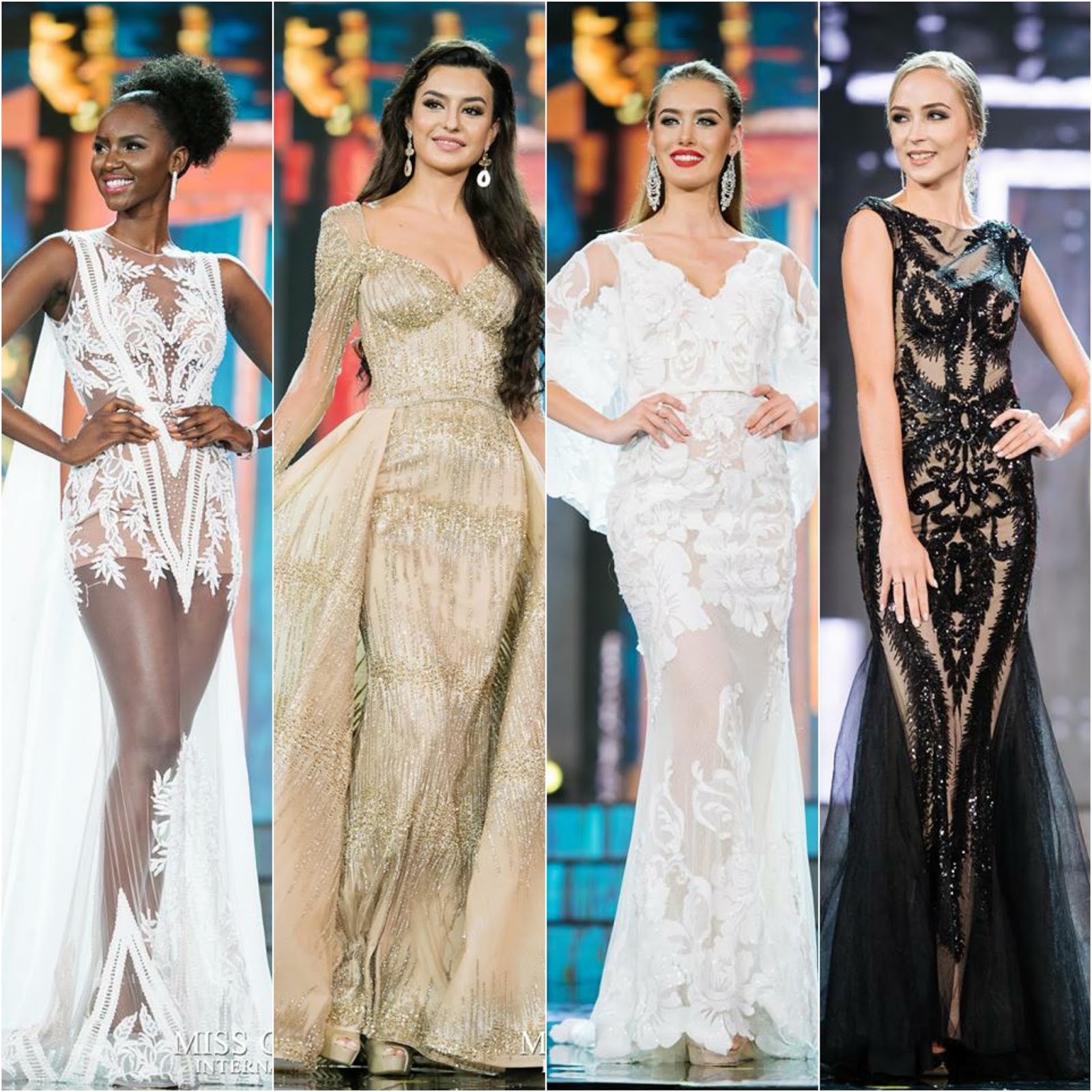 Gown Divas--The Winners of the "Miss Earth 2017 Group 1 Long Gown Competition" (L to R): "Miss Earth Netherlands" (Bronze/Tied) Faith Landman, "Miss Earth Panama" (Bronze/Tied) Erika Parker, "Miss Earth Venezuela" Ninoska Vasquez (Gold), and "Miss Earth Thailand" (Silver) Paweensuda Drouin