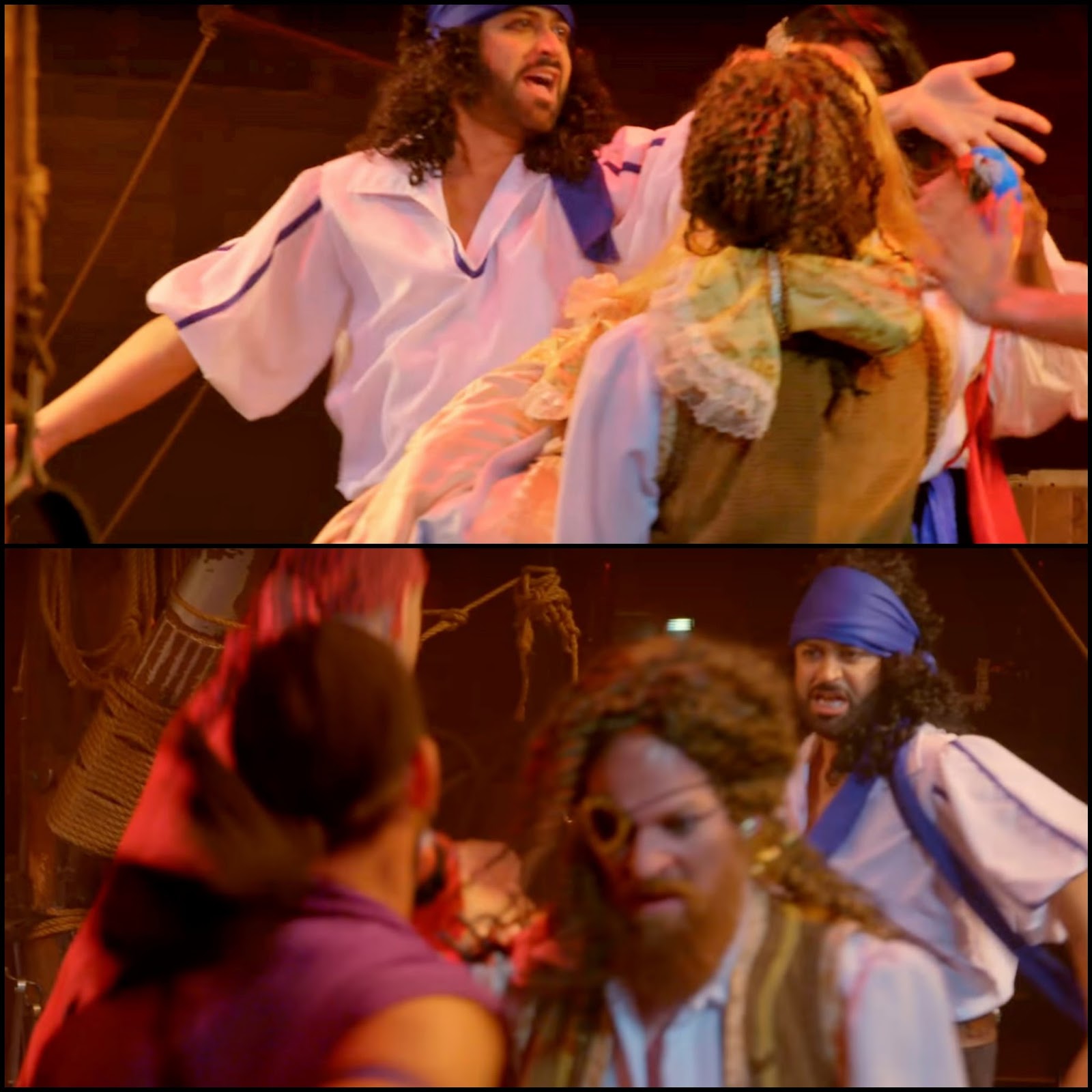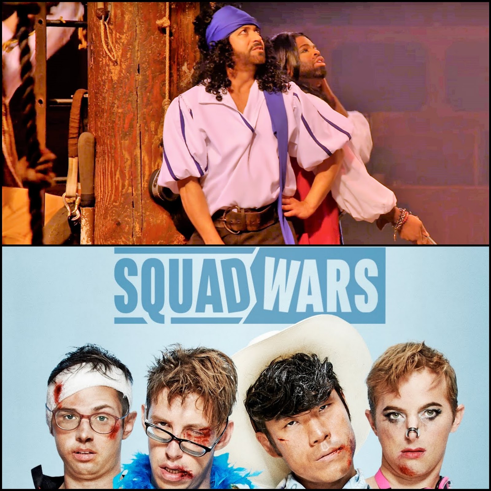 Well, kids for some unknown reason other than "I'll do (almost) anything", I was invited to be part of the first episode of "Squad Wars" which involved being a pirate in a Choreographed Pirate Dinner Show (!). But I wasn't alone, my team also consisted of other "Project Runway" Alumn including Anthony Williams and Bradon McDonald . We had to compete against...three American Ninja Warriors: Yes, three six-pack ab'ed, perfectly fit, can-do-ten-somersaults-in-10-seconds-and-zip-line-in-their-sleep American Ninja Warriors. Along with Anthony, Bradon--and our "Try Guys" guy, Keith Habersberger, we tried to be Pirates For a Day...and well, without giving too much away, someone ended up in the water...But you'll have to watch the episode on YouTube Red to find out who.