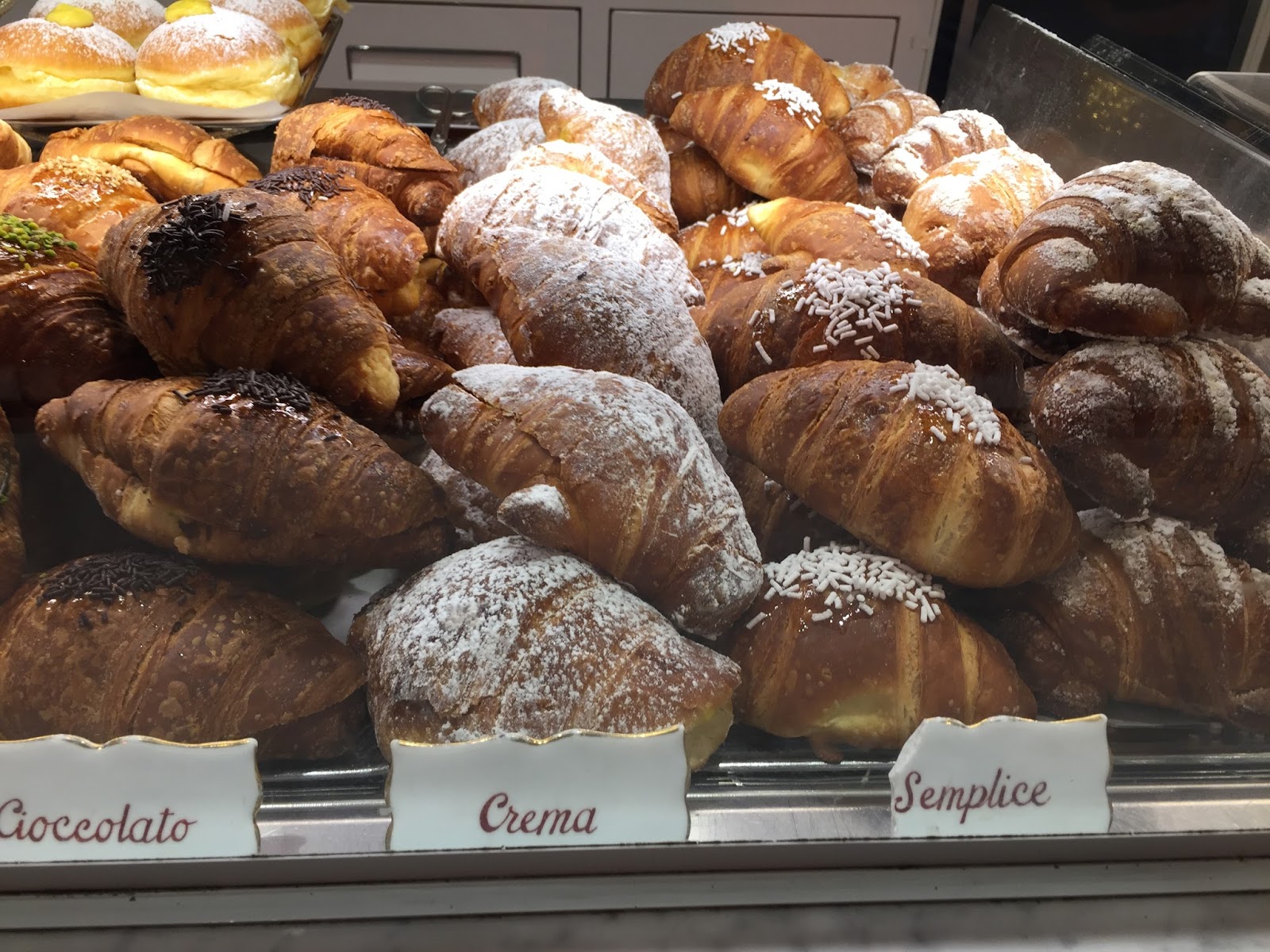 Buongiorno Milano: This is my go-to place for morning cup of cappuccino--Morning pastries display at Caffe Carlino Milano