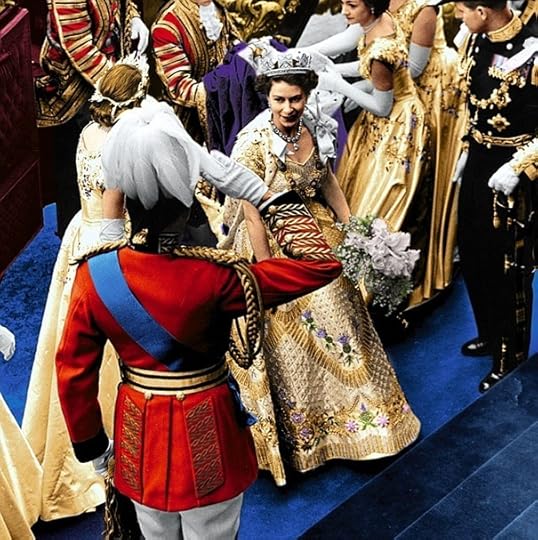 The Coronation Gown was designed by Norman Hartnell: The silk and sequined gown took eight months to make and featured floral emblems of the countries of the United Kingdom and those of other states within the Commonwealth of Nations.