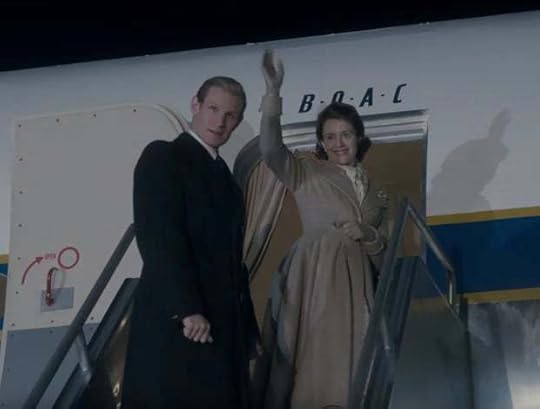 Travel Style: Actors Matt Smith (as Prince Philip) and Claire Foy (as Queen Elizabeth II), as they board a B.O.A.C. airplane on "The Crown"