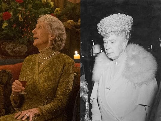 Queen Mary of Teck--Queen Elizabeth's grandmother (on her paternal side), was very Edwardian in her style and this was seen in the costumes created by Michele Clapton (left), followed by the looks seen on the real Queen Mary of Teck (right).