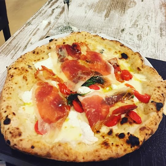 Pizza Time! Mozzarella pomodorino pachino, ricotta, crudo di parma from Pizzeria Caputo Milan Italy