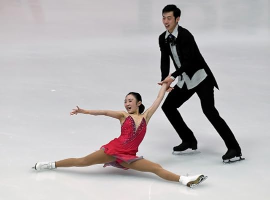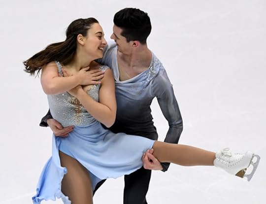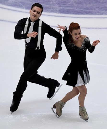 Gabriella Papadakis and Guillaume Cizeron France Short Dance to Blues: Bittersweet by Lene Riebau, Maxim Illion perf. by Club des Belugas and Swing: Diga Diga Doo by Dorthy Fields, Jimmy McHugh perf. by Big Bad Voodoo Daddy--I've discussed these costumes HERE if you want to now what I thought.