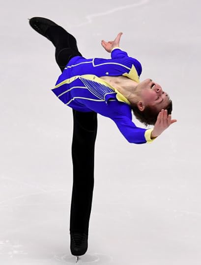 Mikhail Kolyada Russia Short Program Nightingale Tango , John Gray by Matvei Blanter: I don't know about you but the color combination of bright royal blue and yellow is just a bit on the garish side. Even for me. This top looked like something a Head Waiter from a Euro Disney Buffet Restaurant would wear.