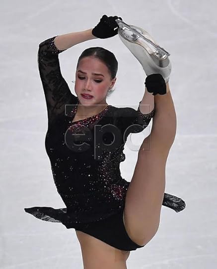 Alina Zagitova Russia Short Program to Me Voy by Yasmin Levy--Russia's Olympian Alina Zagitova was vibing the Spanish flamenco theme with this black lace and sequined costume. I wasn't overly moved by this look; to be honest, it seemed a bit "old" and rather uninspiring for her. All that lace and darkness reminded me of the black lace Mantillas the widows wear to their husband's funerals. The one word that comes to mind is "Bland". It seems she was saving her "Ta-Da!" Costume for her free Skate...