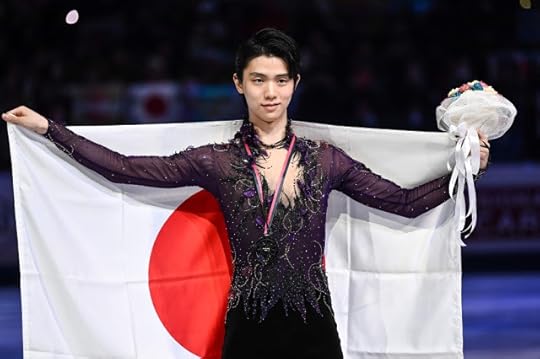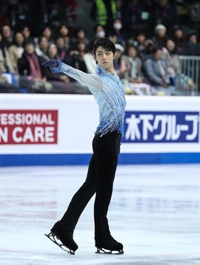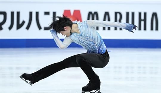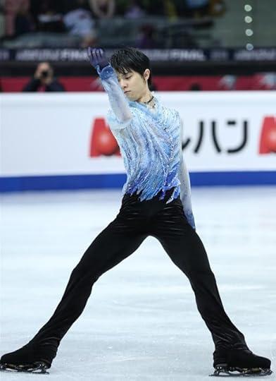 Free Skate to Origin ("Art on Ice") by Edvin Marton--This was a STUNNING costume worn by Yuzuru Hanyu for his Free Skate. The subtle purple shading, the beautiful gold curved rhinestone design, the juxtaposition of the solid vs. the sheer, the 3D effect of the applique...all details that add up to a very Couture-like design that is right for such a Couture-like figure skater.