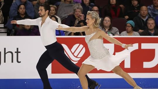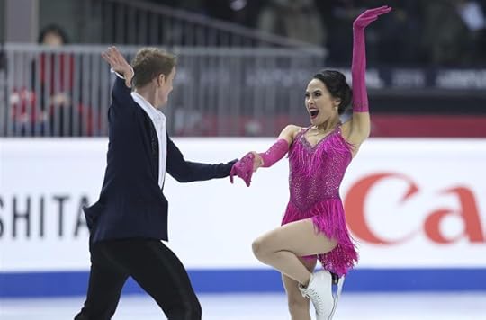 Kirsten Moore-Towers and Michael Marinaro Canada Short Program to Love On the Brain (Los Feliz Blvd) feat. Bishop Briggs--I liked these pretty costumes worn by Kirsten and Michael. The striped sequin detail on her dress was nice and "jazzy"--she looked sleek and chic. I also liked the sheer/solid panels which mirrored her sequined "stripes" which was a nice way of pairing them together--costume-wise.