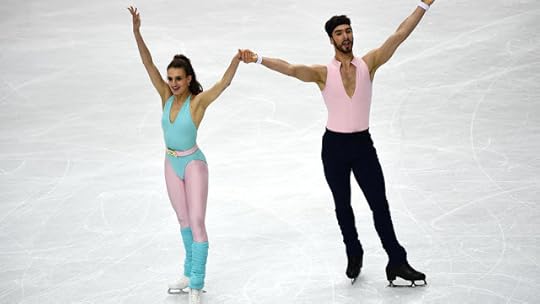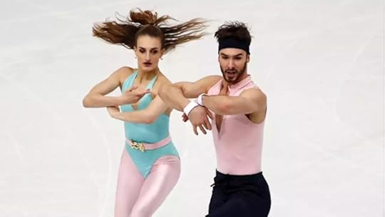 Gabriella Papadakis and Guillaume Cizero France Rhythm Dance to I Can Do Anything Better Than You Can by S. Linzer & D. Wolfert (arrang. by Maxime Rodriguez) from "Fame" by Michael Gore, Dean Pitchsord, Fame by Michael Gore, Dean Pitchsford (arranged by Maxime Rodriguez and Ludivine Amado) and Fame by Michael Gore, Dean Pitchsford, performed by Irene Cara--Naturally, these 80's Jazzercize looks were probably my FAVORITE "costumes" from this season's Rhythm dance. Only this fab French Ice Dance duo can pull off ice dancing to "Fame" complete with leotards, headbands, and legwarmers in such a flawless manner that no one, absolutely NO ONE, batted an eyelash! It was fab cheesy, disco-licious and Retro Chic, all at the same time. They left me in a sweat...after watching them!
