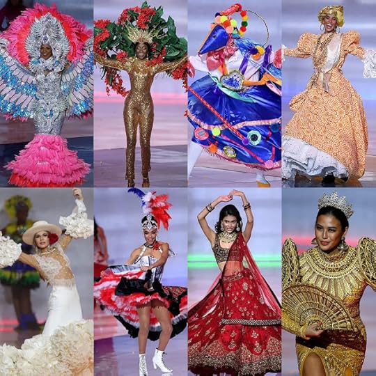 Dances of The National Costume World--National Costumes displayed during the Miss World 2019 "Dances of the World" Introductions--(Clockwise, from top) Miss World Nicaragua Maria Teresa Cortez, Miss World Trinidad and Tobago Tya Jane Ramey, Miss World Panama Agustina Ruiz Arrechea, Miss World Venezuela Isabella Rodriguez, Miss World Philippines Michelle Dee, Miss World India Suman Rao, Miss World France Ophely Mezino, and Miss World Spain Maria del Mar Aguilera--Miss World 2019 Final, London UK