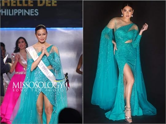 Miss World Philippines Michelle Dee--In a gown designed by Filipino designer Francis Libiran , Michelle conquered my No. 2 "Miss World 2019" Gown Spot. I thought she looked gorgeous in this teal-colored sequined gown with a front opening, sheer illusion panels, and dramatic full sleeve drapes. It was DRAMA and not in a Diva way...more PRETTY DRAMA. Her chic slicked hair and proper silver strappy heels were STYLE PERFECTION!