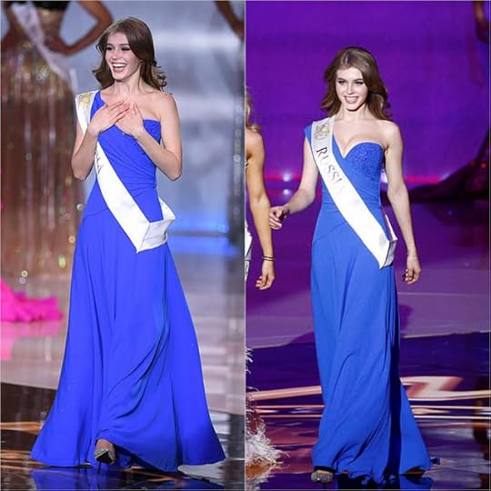 6. Miss World Russia Alina Sanko--Alina looked very Red Carpet-ready in this simple-yet-elegant blue gown with a one-shoulder side drape, sequined bustier and flared skirt. The shape and style were beautiful and non-Pageant Betty...very now, as opposed to 1990's Pageant Tackylicious. Her soft hair and no accessories made her look so on-trend evening right! I also absolutely LOVED the sequined pointy heels (with no platform, thank goodness!).