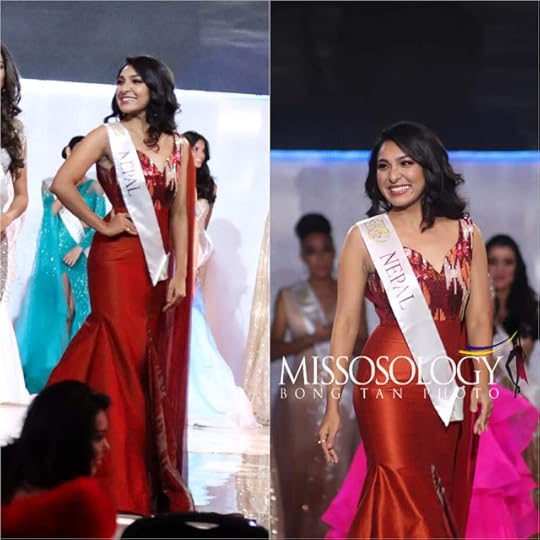 9. Miss World Nepal Anushka Shrestha--Anushka wore this one-shoulder red fit-and-flare gown. While the color was impacting and nice for her, and the length was perfect...the fit was a bit too tight. I liked the sequined "print" top but that sweetheart neckline was a bit too mumsy.