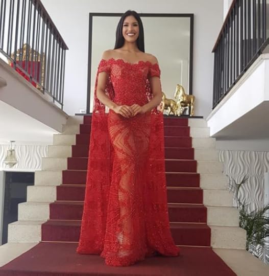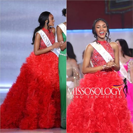 11. Miss World Kenya Maria Wavinya--Maria wore this red halter-style ballgown for the Miss World 2019 Final. The color was certainly impacting onstage and she was noticed. I am just not a fan of the feathered and ruffled full skirt. Unless it's done by a major Couturier, like Pierpaolo Piccoli of Valentino. This lacked regalness, finesse or runway chic-ness. She looked very "Miss World Pageant Betty", which maybe was right for this occasion, but for me, not so much.