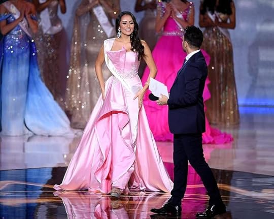 8. Miss World Brazil Elis Miele Coelho--Elis wore a soft-pink "Princess"-style gown for the Final of Miss World 2019. The dress featured a semi-plunging neckline, tulle/netting overlay, a fitted upper torso, and a full ball-gown-like skirt. The design had a delicate sequined flower applique and was designed by Flavia Maciel . It was pretty but I have to admit, it seemed almost too "Mother-of-the-Bride/Prom" for her. I wanted a bit more red carpet fabulousness but I get that this is "Miss World" and the contestants tend to favor a more, conservative/traditional lady-like look.