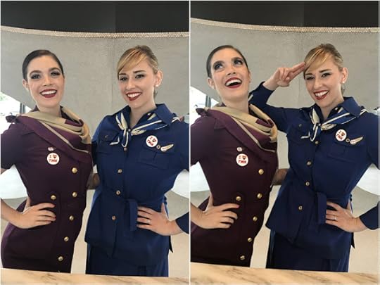 How Can We Help You?--Enjoying time with the "TWA Hostesses" Stevie and Sarah, at the TWA Hotel JFK Airport