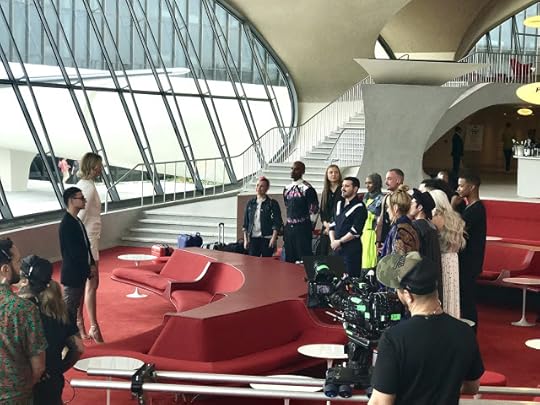This past Summer, we filmed this new Season 18 of "Project Runway" which is airing now on Bravo TV . We filmed the announcement of the first challenge at the iconic TWA Flight Center/JFK Terminal 5, which is now the super fab TWA Hotel . As a Consulting Producer for the show, I got great access to the location and naturally, as an avid fan of anything involving airlines and airplanes, I was like a kid in a candy store!