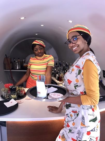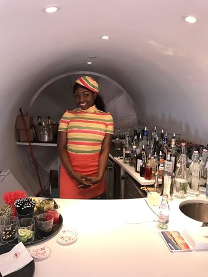 Hostesses in vintage TWA ensembles were serving customers at the TWA "Connie" Bar--TWA Hotel, JFK Airport