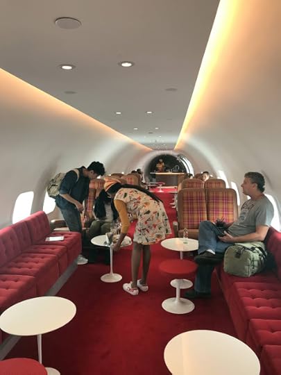 During our time filming the Premiere Episode of Bravo's Season 18 "Project Runway" , as a Consulting Producer , I got the chance to be at the iconic TWA Flight Center--or JFK Terminal 5 as it is also known--which is now the TWA Hotel . You can go HERE , HERE and HERE to check out some of my other BLOGS on filming here for the show, but this one involves actually visiting the restored TWA-branded Lockheed Constellation airplane from the 1950's that is now...A BAR!!!